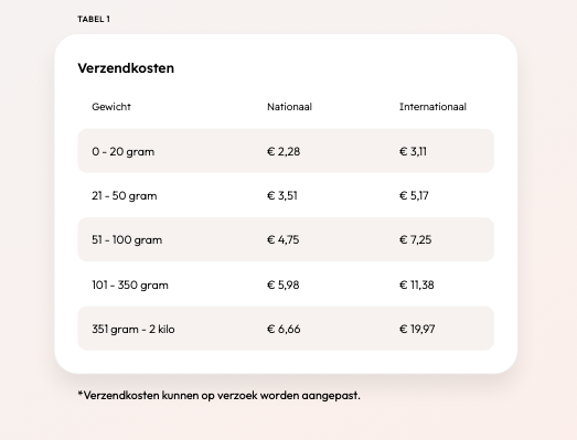 Flexado werkt met standaard verzendtarieven (zie tabel) die van toepassing zijn wanneer er geen locatie-specifieke tarieven zijn ingesteld.